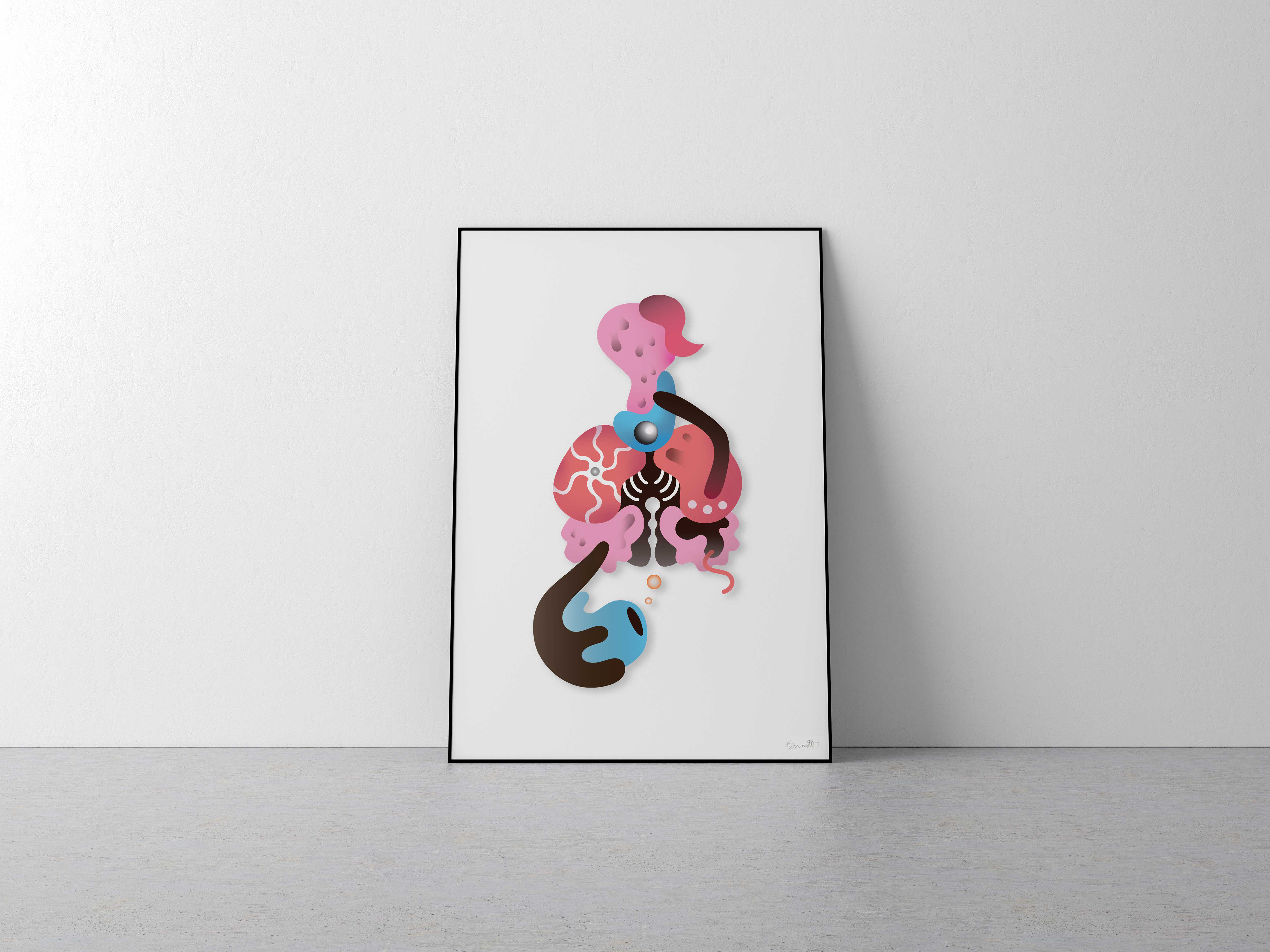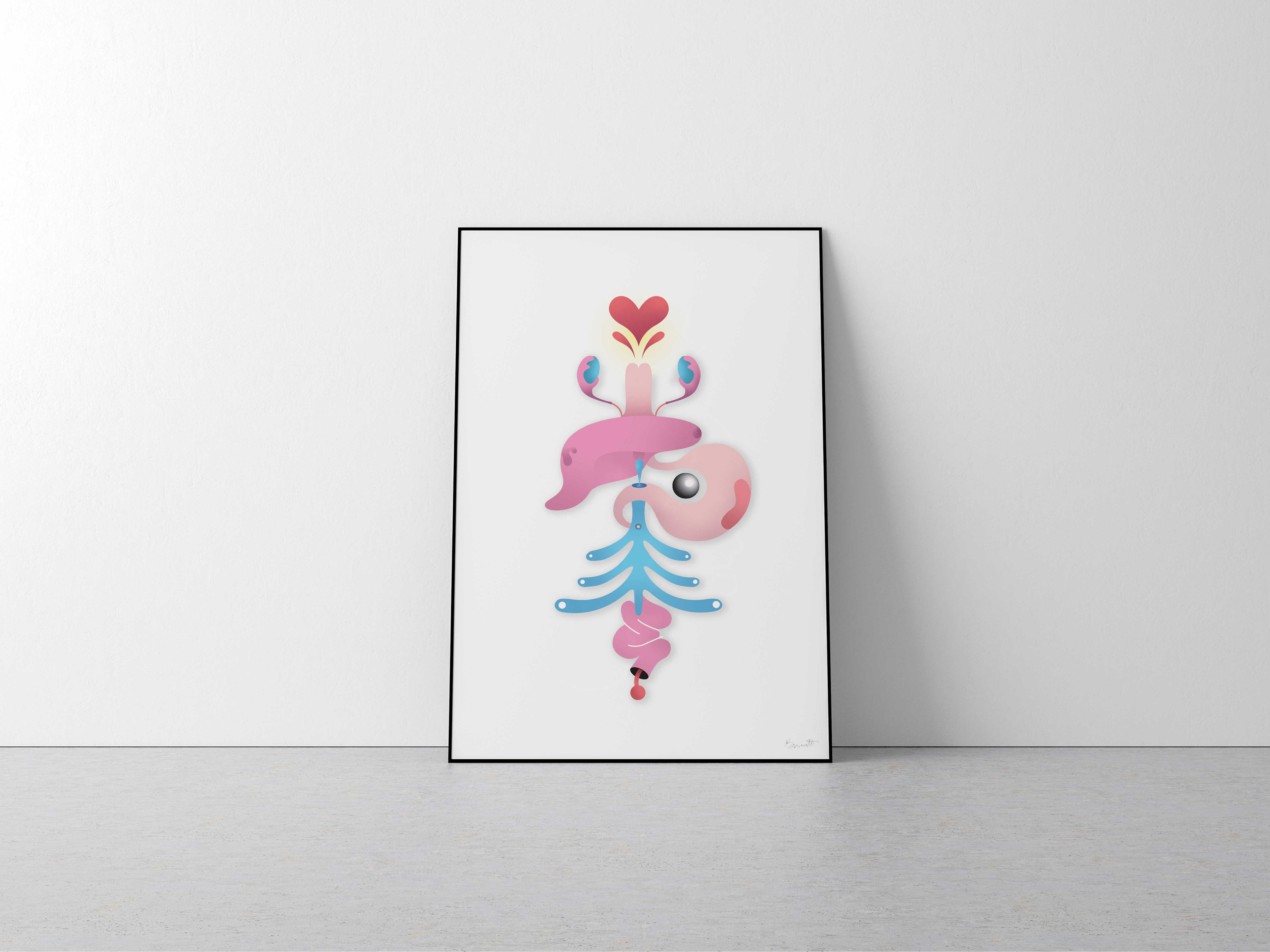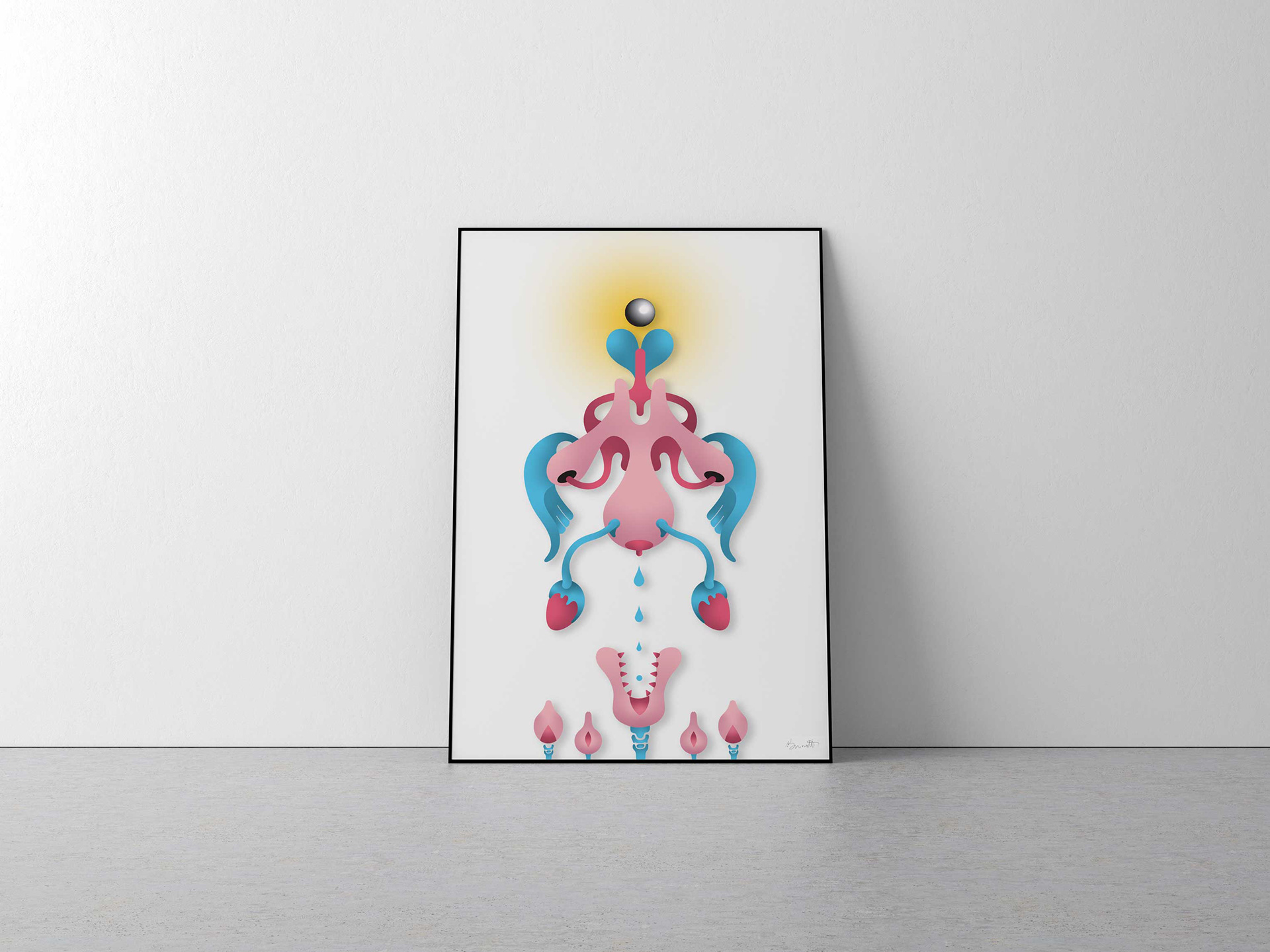 Anatomy, physiology, and integration of elements were the premisses of these illustrations. I’ve had the images in my head for the last seven or six years and decided to bring them to life as a series of illustrations. My central idea was to create the compositions where there was a sequence of events representing a clear and yet abstract cycle—in this case, a bio-like organization inspired by the human body.