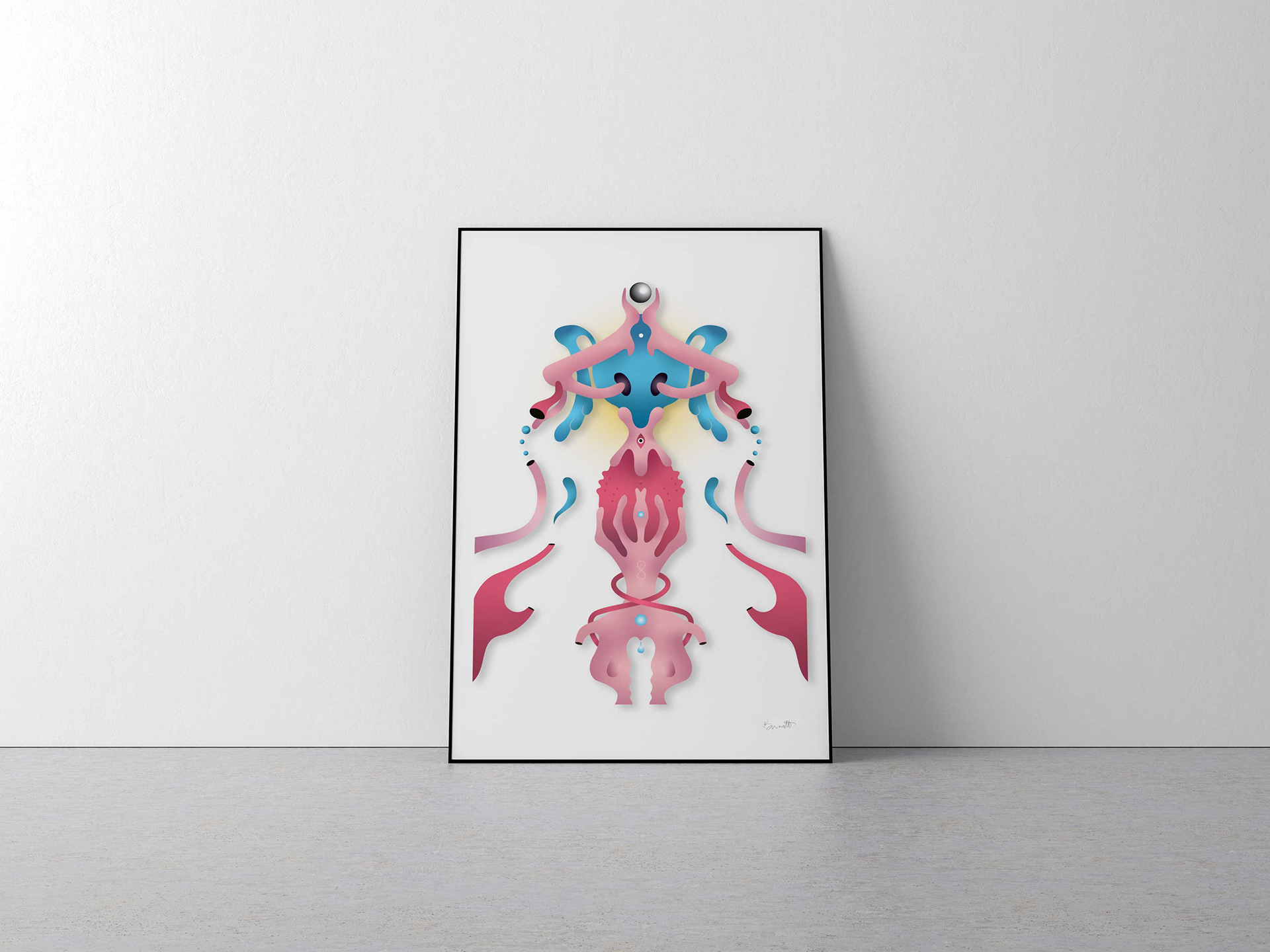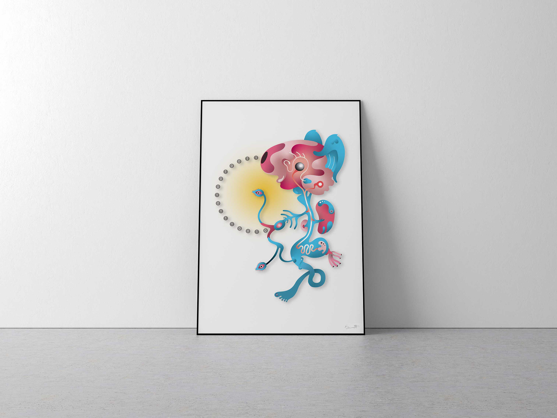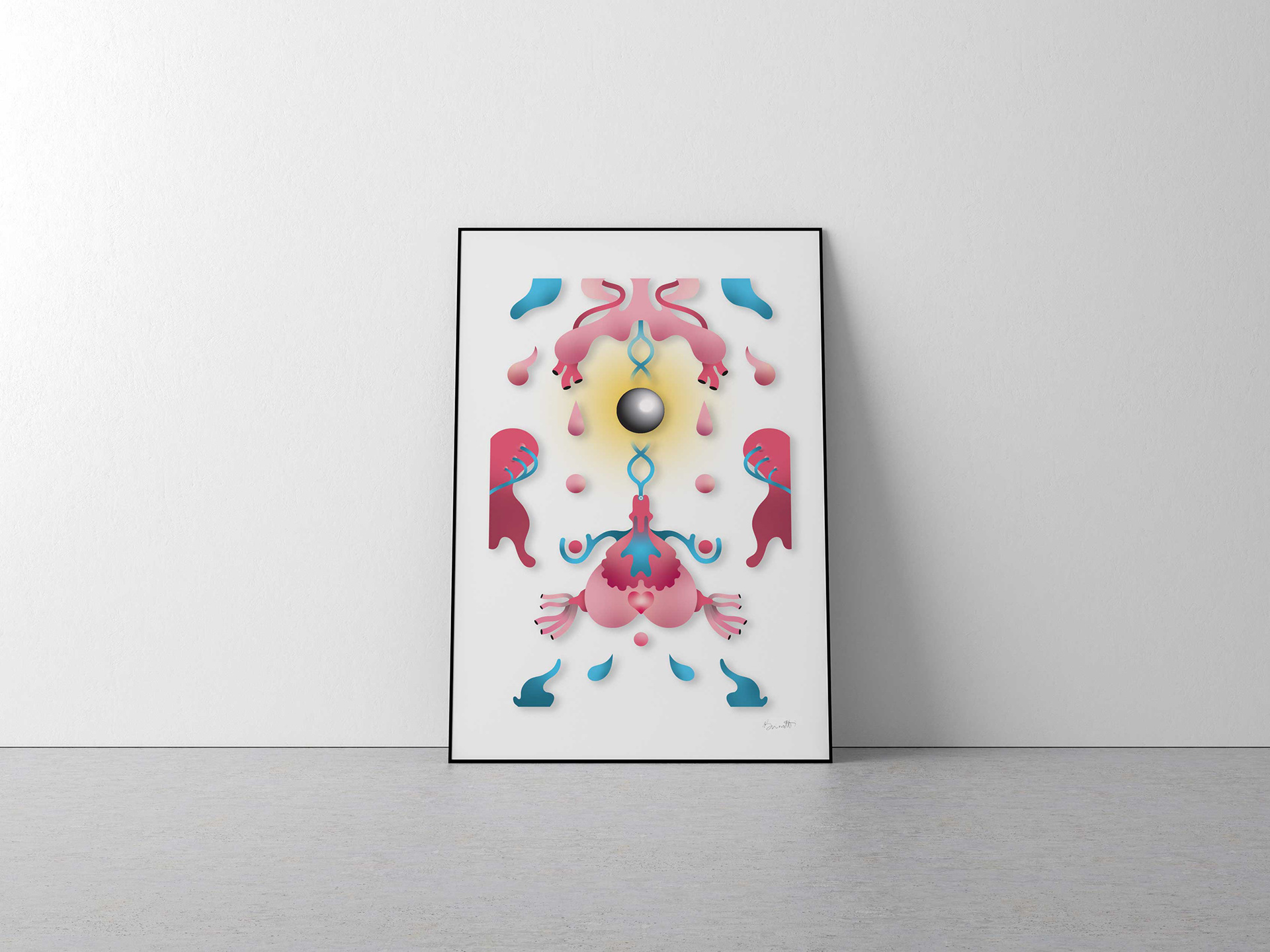 Anatomy, physiology, and integration of elements were the premisses of these illustrations. I’ve had the images in my head for the last seven or six years and decided to bring them to life as a series of illustrations. My central idea was to create the compositions where there was a sequence of events representing a clear and yet abstract cycle—in this case, a bio-like organization inspired by the human body.